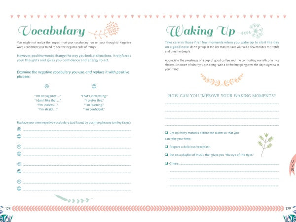 Congratulations! You're about to take your happiness into your own hands! Using 98 concepts listed alphabetically from A to Z, you'll find ways to make small changes that will lighten and brighten your life. This guided journal uses three phases—introspection, self-challenge, and action—to help you open a new page in your personal story. Jot down your thoughts, feelings, and resolutions to establish a life that reflects the real you. Follow the path toward more well-being and serenity in your everyday life, at the office, and with your family and friends.[AuthorName]By Raphaëlle Giordano[/AuthorName][AuthorBio]Raphaëlle Giordano is a group coach and a qualified Myers-Briggs Type Indicator consultant. Founder of Emotone, she collaborates with creativity/innovation, communication, team cohesion, and stress management companies. She is the author of the French bestseller Ta deuxième vie commence quand tu comprends que tu n’en as qu’une (Your Second Life Begins When You Realize You Have Only One).[/AuthorBio][NumIllustration][/NumIllustration][CoAuthor][/CoAuthor][SubTitle]A Guided Journal to Enhance Your Daily Life[/SubTitle][ColorPattern][/ColorPattern]
