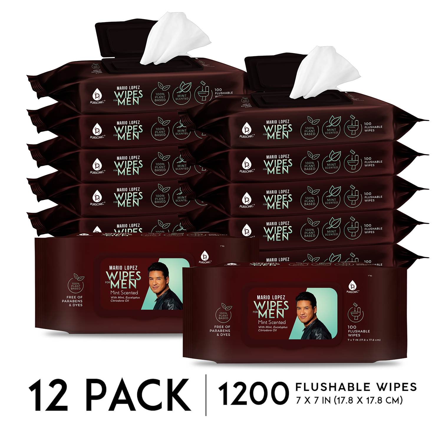12 Pack of Flushable Mario Lopez Man Wipes (1200 Mint Scented Wipes) by Pursonic