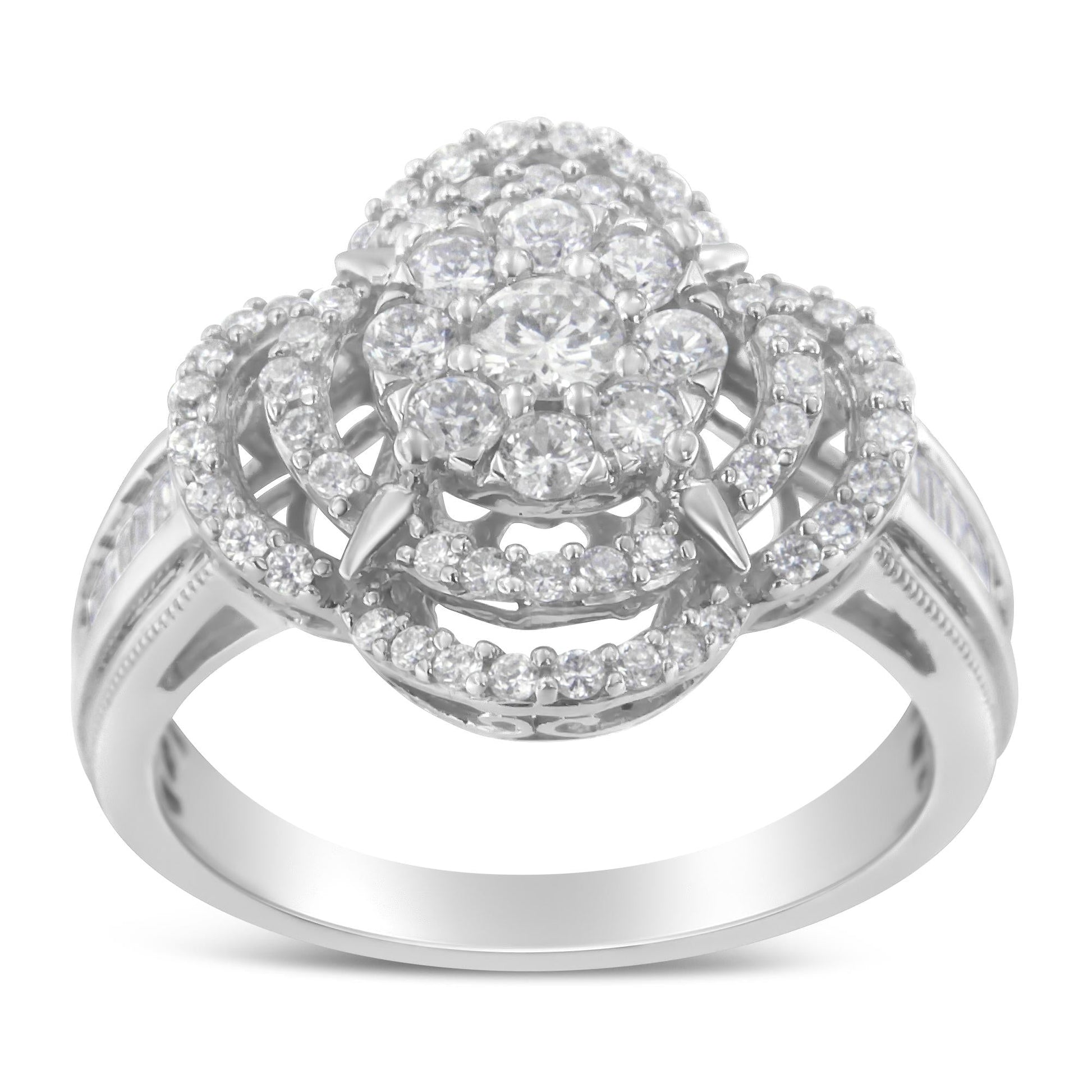 14K White Gold 1.0 Cttw Round & Baguette Cut Diamond Floral Cluster Quatrefoil Channel Set Band Cocktail Statement Ring (H-I Color, SI2-I1 Clarity) by Haus of Brilliance