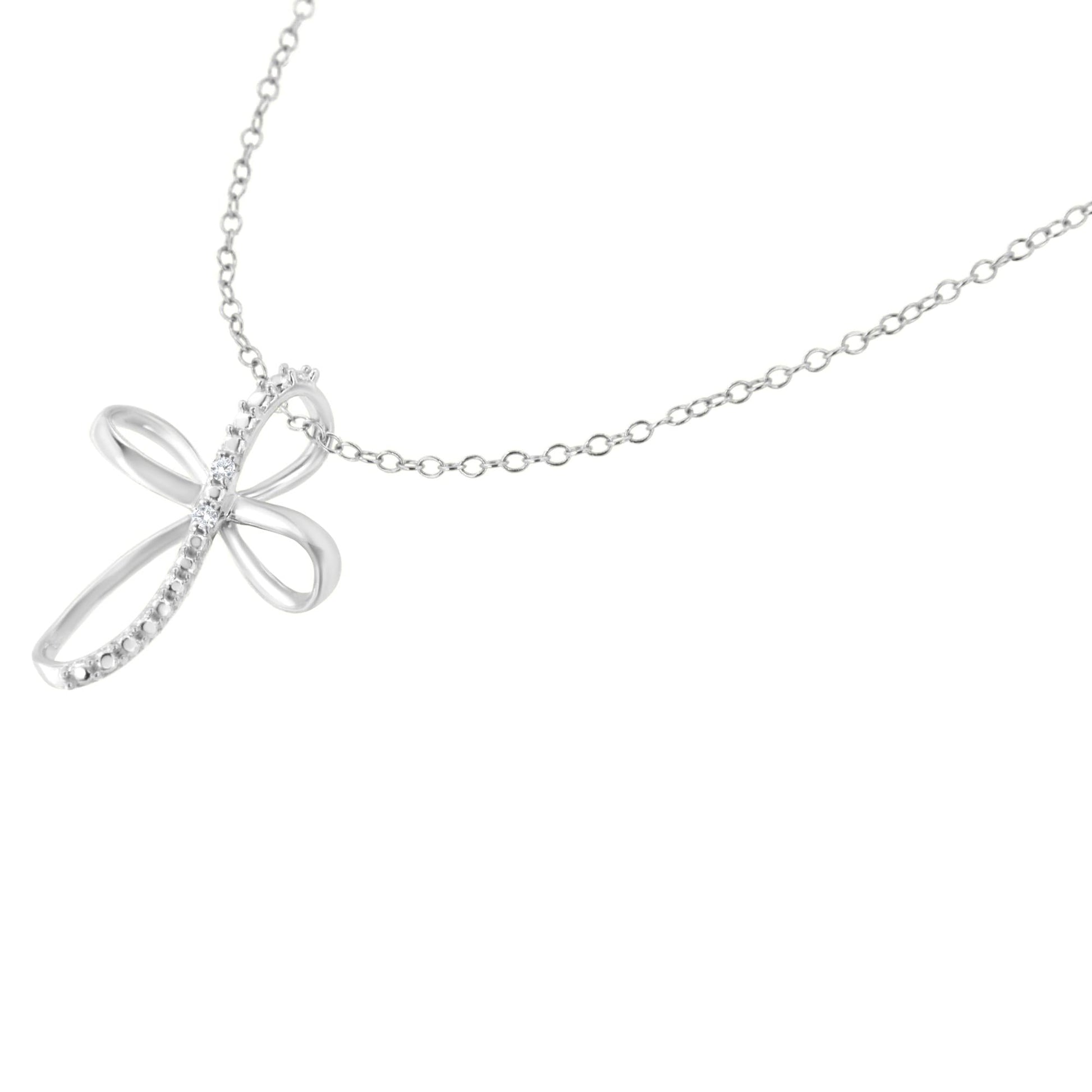 .925 Sterling Silver Diamond Accent Cross Ribbon 18" Pendant Necklace (I-J Color, I2-I3 Clarity) by Haus of Brilliance