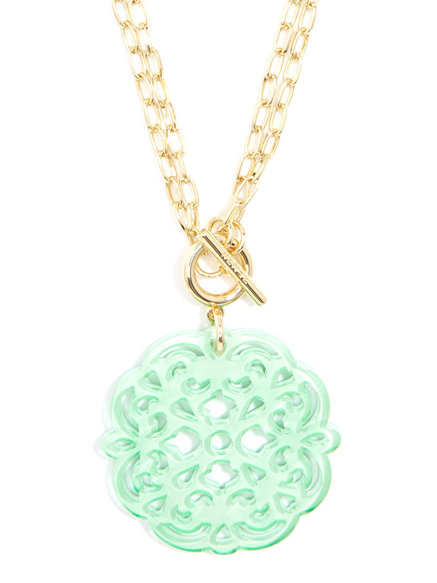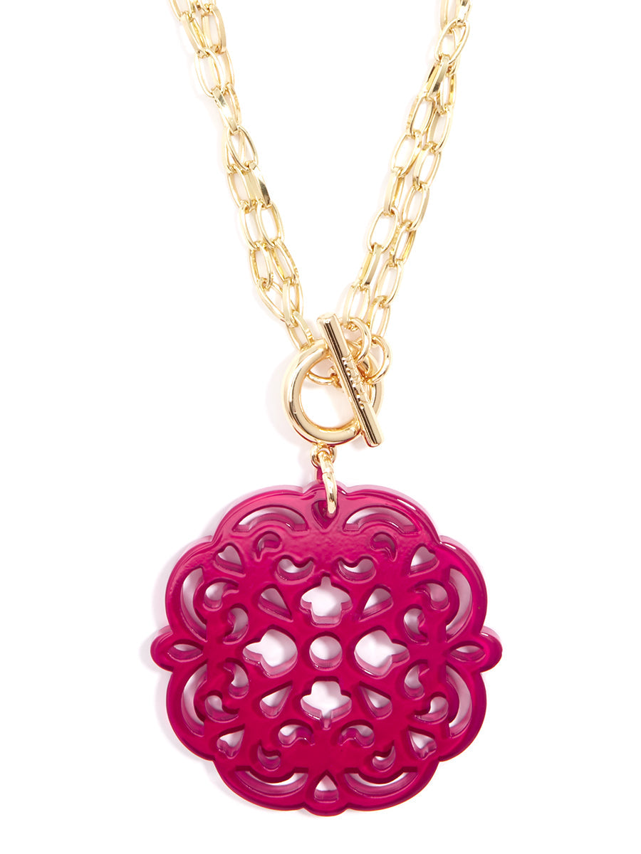 Stand out with this fun, Allure resin pendant necklace. Available in a variety of colors, this style can be worn as a long necklace or short necklace with its adjustable toggle.