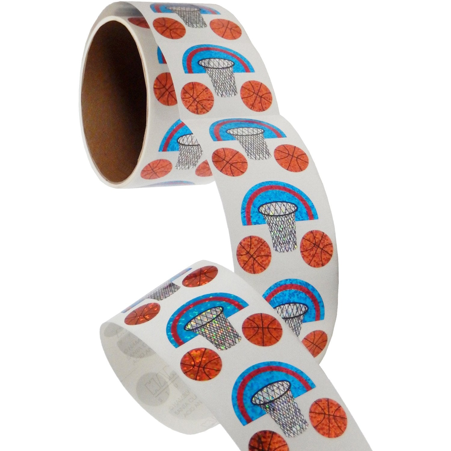 Bulk Roll Prismatic Stickers, Mini Basketball (100 Repeats).