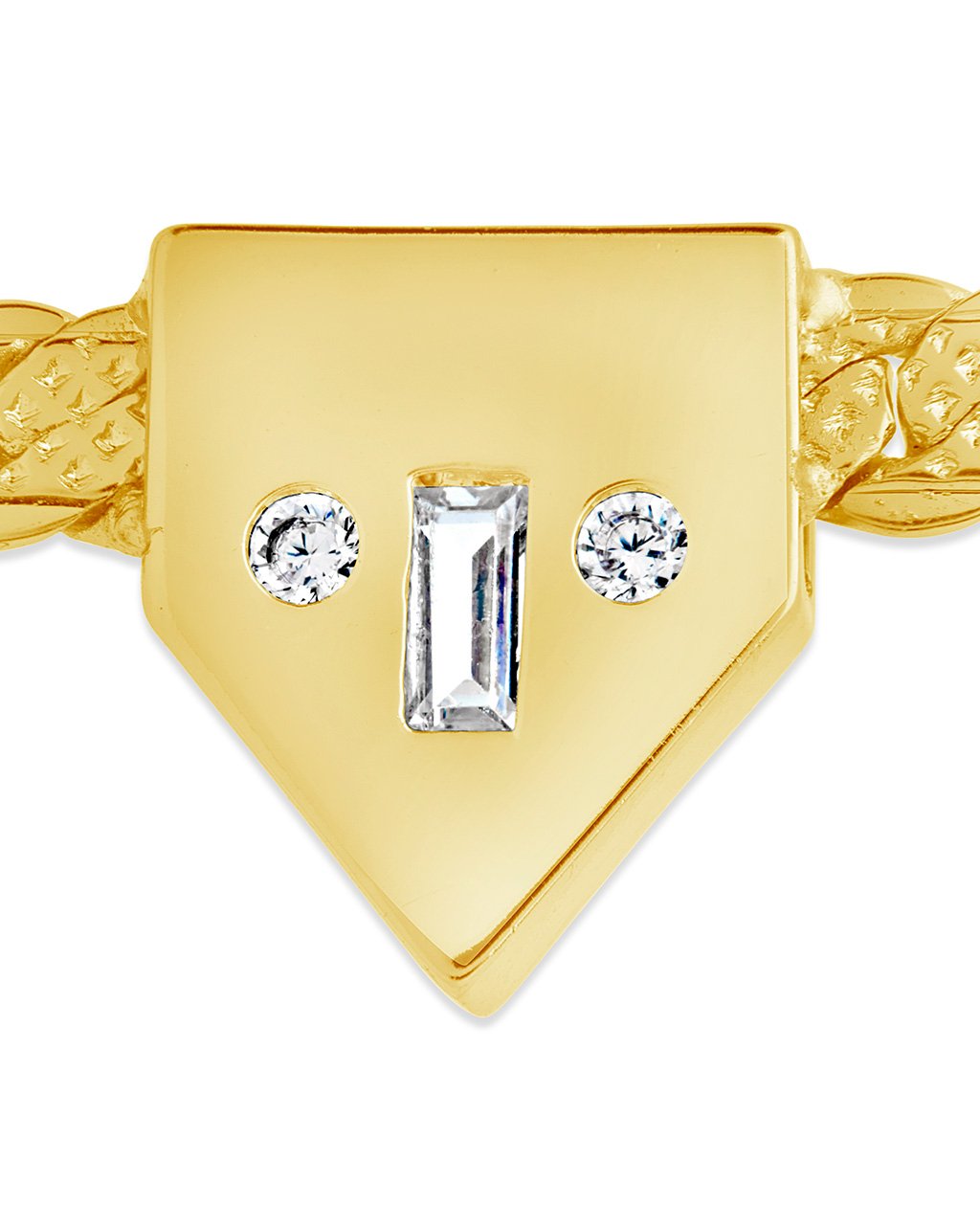 This is no ordinary choker! You'll turn heads when you're wearing this striking chain choker necklace with a pointed center pendant that features shining CZ stones. Available in gold and silver tones.