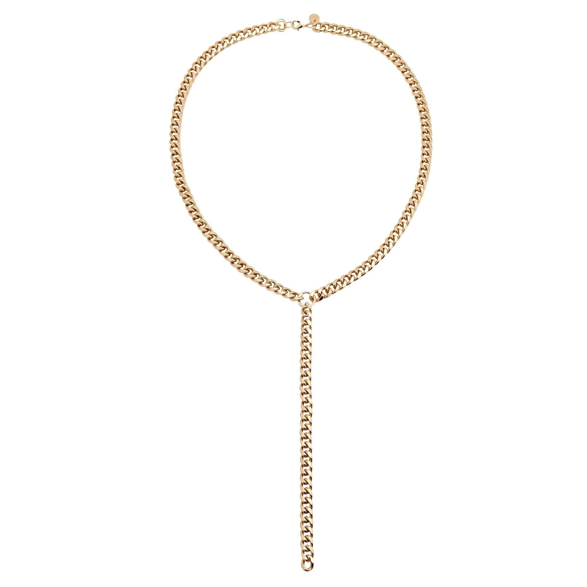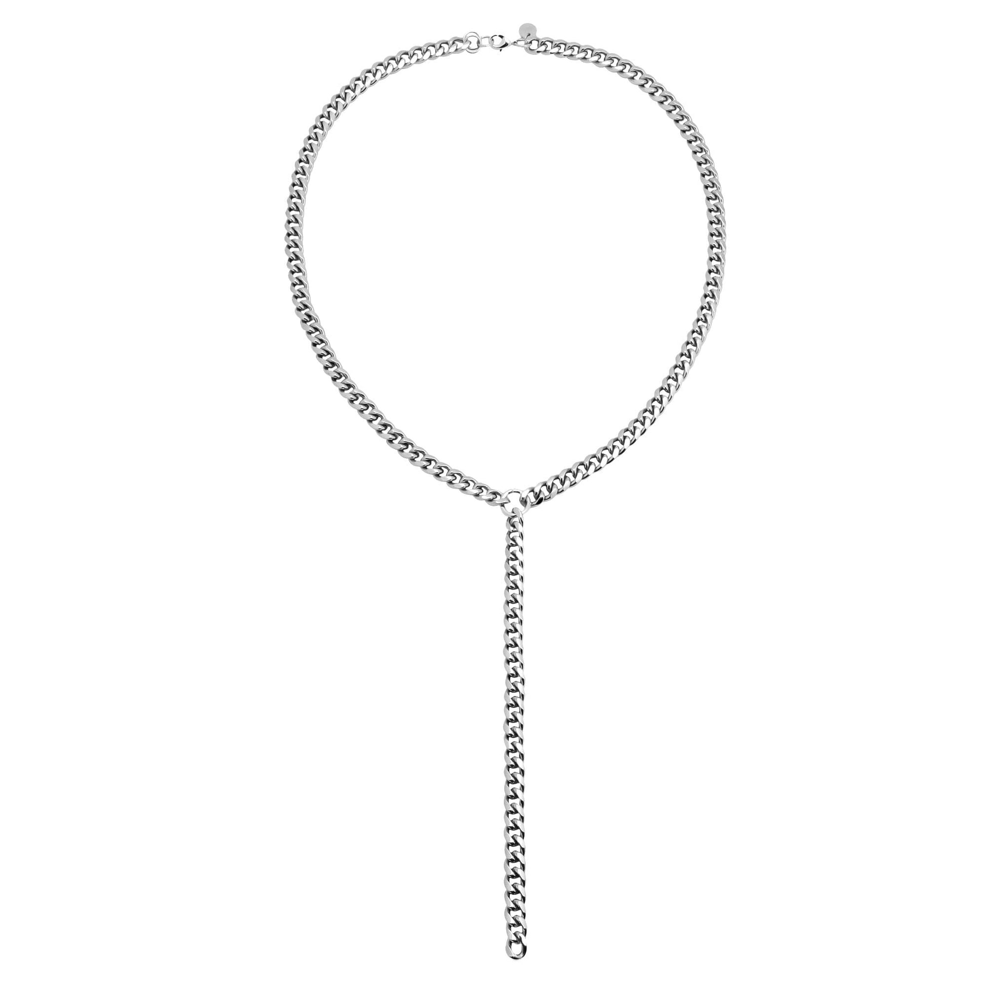 The Curb Chain Lariat is made from rounded recycled brass Cuban link chain, fastened with a with lobster clasp. Finishes available: 14K Gold or Rhodium-Silver.