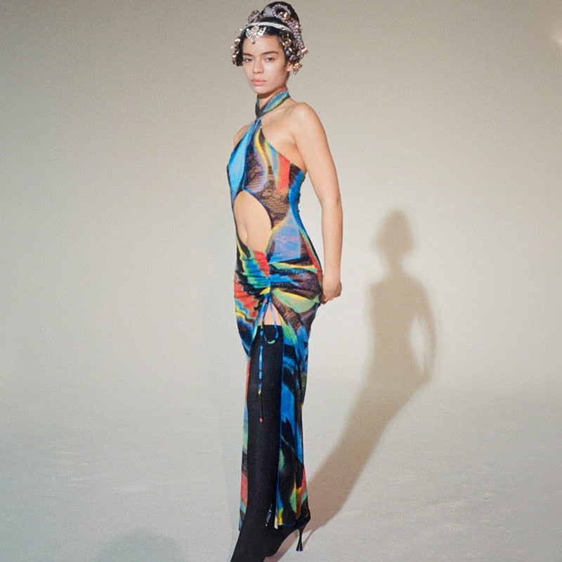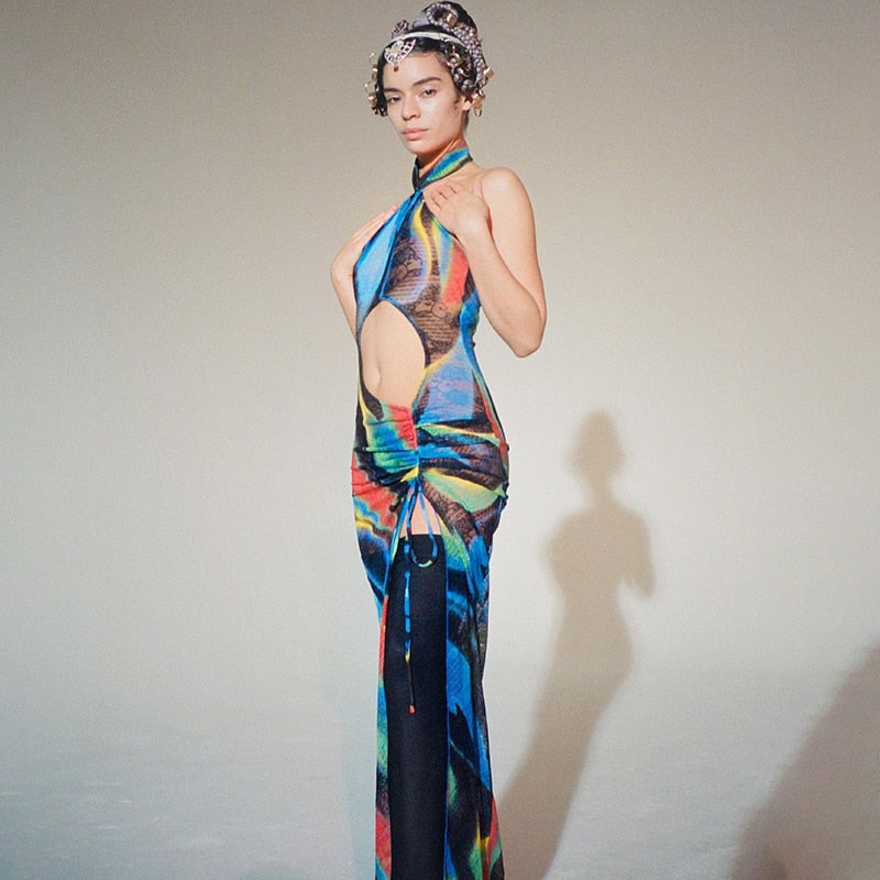 Land of Nostalgia Asymmetric Women's Sleeveless Turtleneck Summer Slit Dress by Land of Nostalgia
