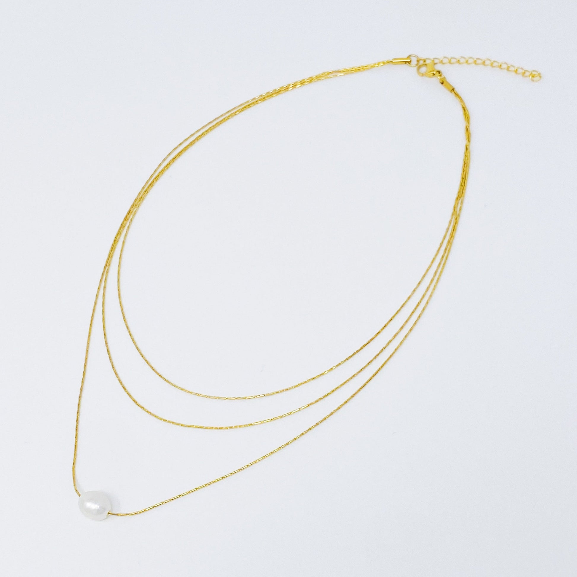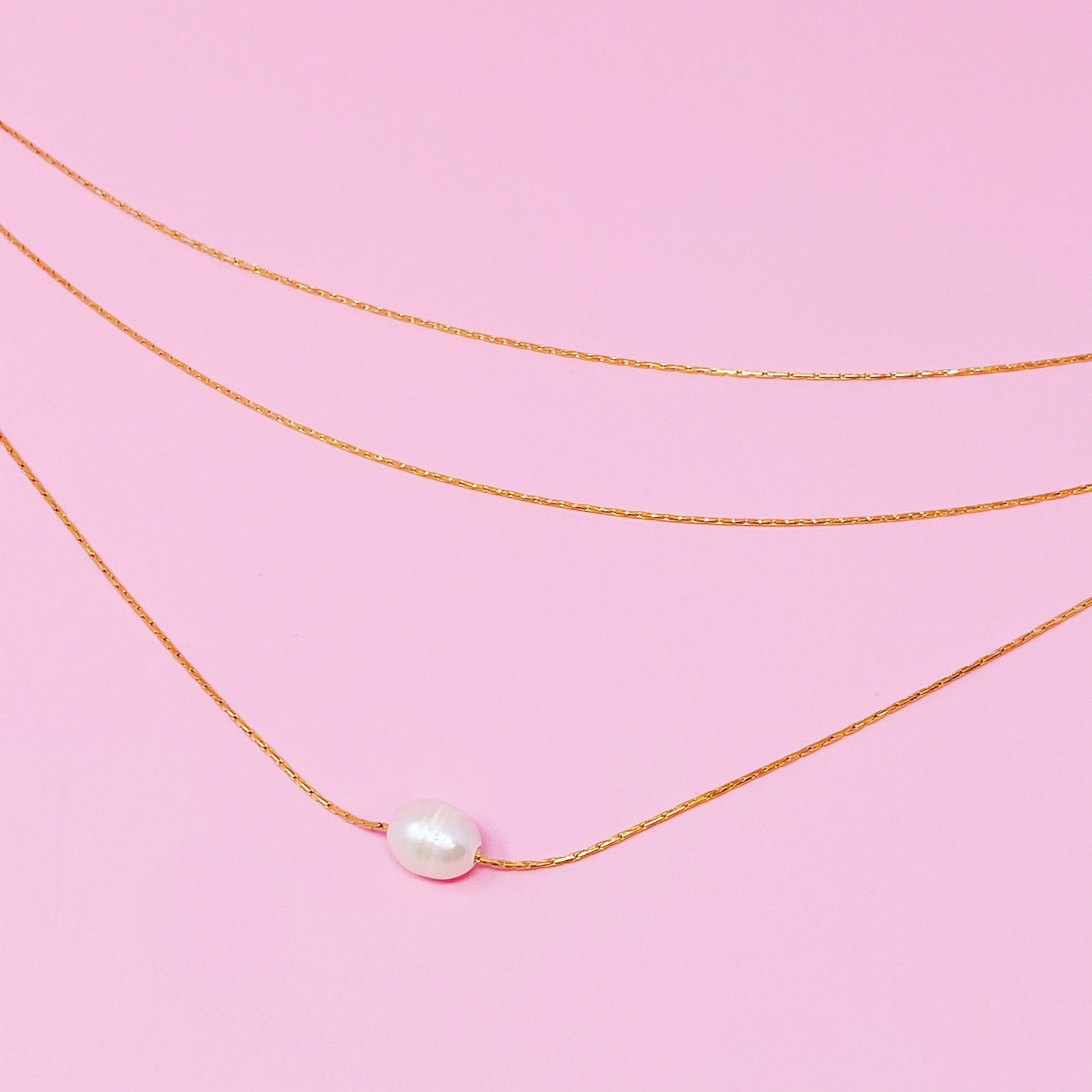Beautiful layered necklace with single freshwater pearl! Understated and classy with dainty details!