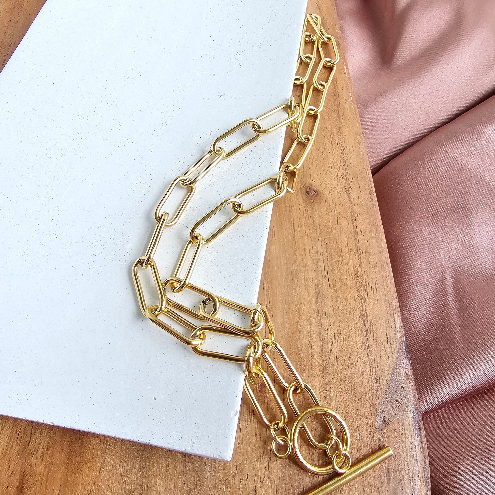 Introducing our all-new Luxe Gold Chunky Paper Clip Chain – your stylish sidekick for every occasion! Whether you're rocking your favorite jeans and tee combo or glamming up for a night out, this chain has got your back. Versatility is the name of the game here. Whether you're a fan of minimalism or love a layered look, this necklace is your ultimate styling canvas.