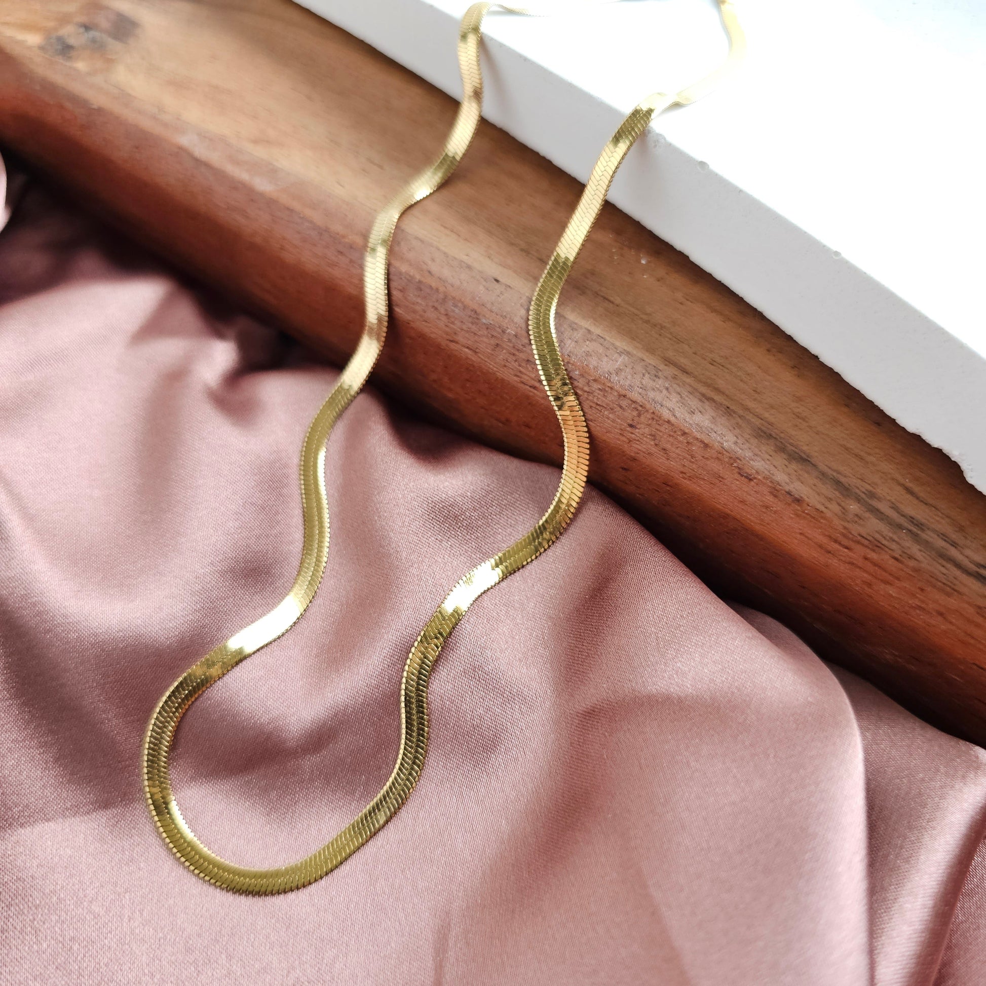 Introducing our all-new Luxe Gold Delicate Herringbone Chain – your stylish sidekick for every occasion! Whether you're rocking your favorite jeans and tee combo or glamming up for a night out, this chain has got your back. Versatility is the name of the game here. Whether you're a fan of minimalism or love a layered look, this necklace is your ultimate styling canvas.
