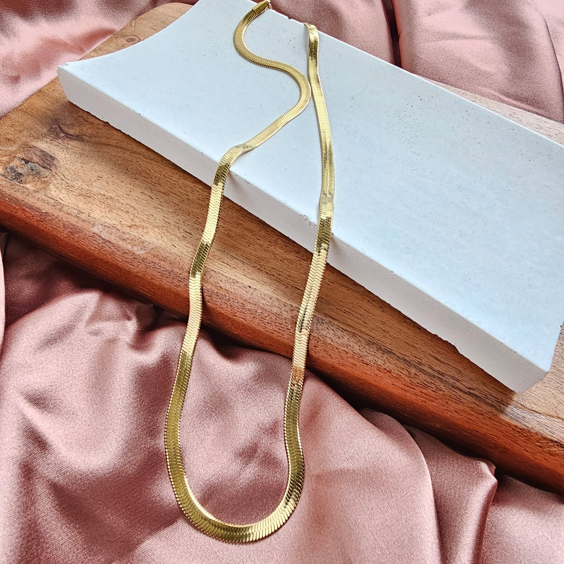 Introducing our all-new Luxe Gold Herringbone Chain – your stylish sidekick for every occasion! Whether you're rocking your favorite jeans and tee combo or glamming up for a night out, this chain has got your back. Versatility is the name of the game here. Whether you're a fan of minimalism or love a layered look, this necklace is your ultimate styling canvas.