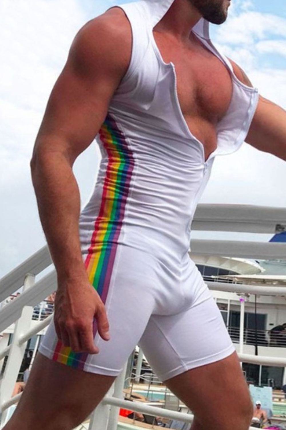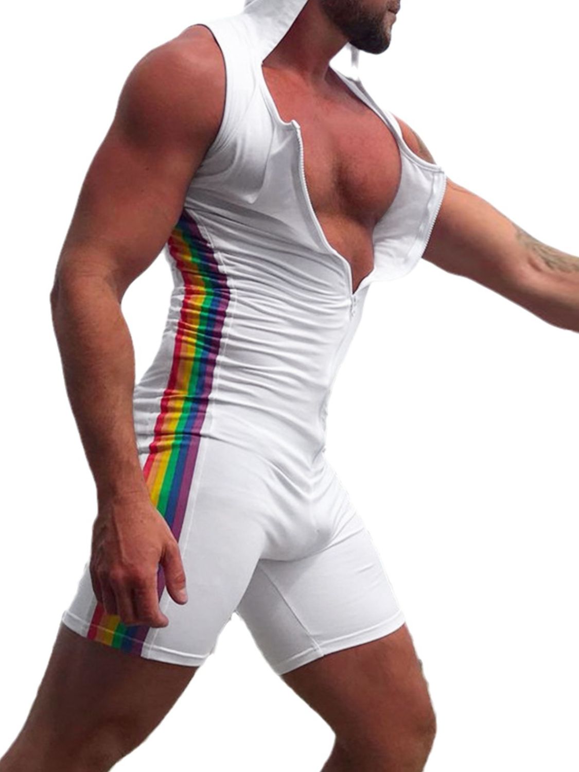 Men's Full Size Contrast Zip Front Sleeveless Active Romper Plus Size