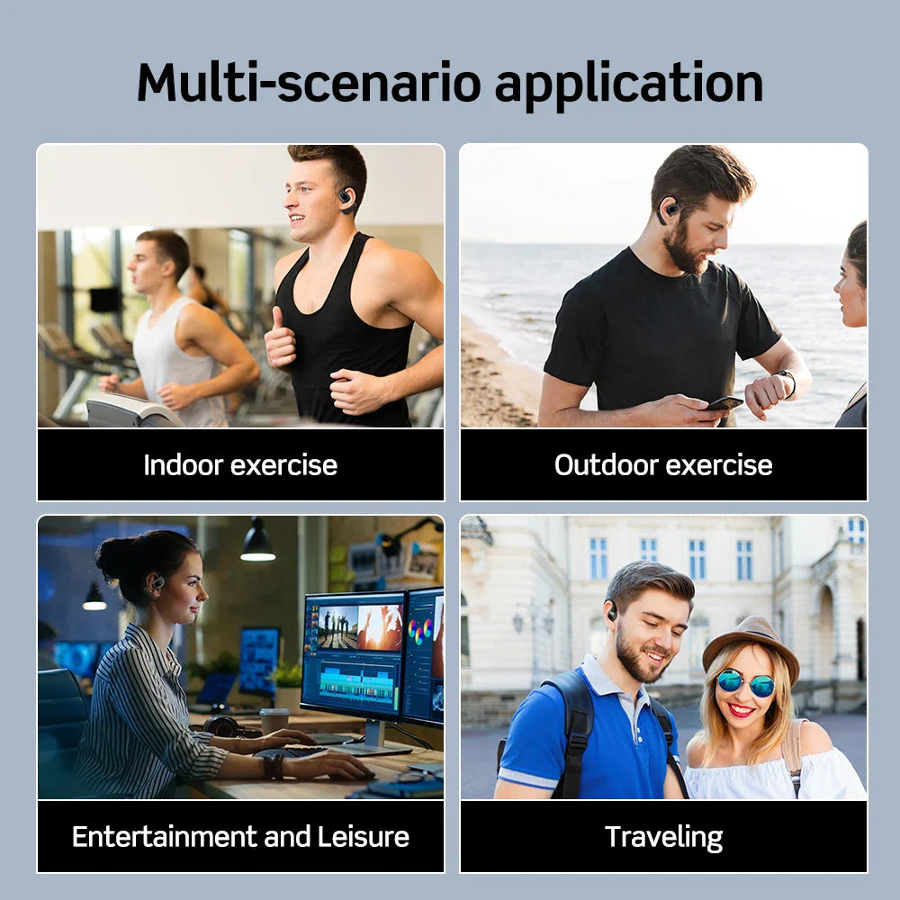【Maintain Situational Awareness and Safety】When in motion, open ear headphones make you keep safe with improved awareness of pedestrians and traffic. When in the office, open ear headphones make you interact with your colleagues while hearing your favorite song. When at home, open ear headphones make you stay connected to your family and friends without missing any important messages.