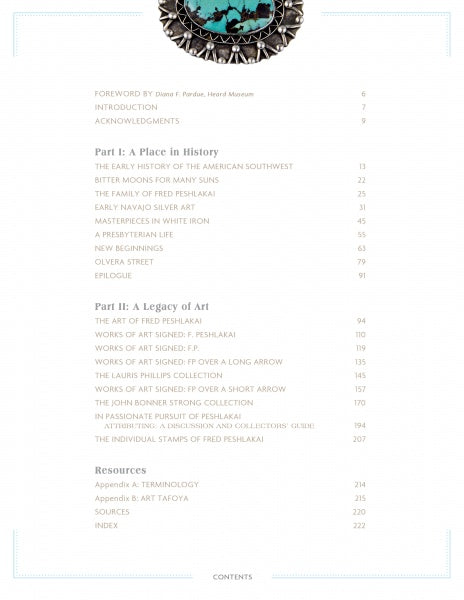 Explore the life and art of legendary Navajo silversmith Fred Peshlakai, and see how his masterful art began and evolved. Beginning with the history of the Navajo people, it follows world events impacting the American Southwest and the Navajo culture precipitating in the development of their unique expressions of art rendered with silver and stone. Nineteenth-century evolution of the art form is reviewed, shining a particular light on certain ambiguities regarding important interrelationships between its most famous figures. Fred Peshlakai hailed from one of the most recognized artistic bloodlines of his noble people. This book is the beginning catalogue of his beautiful silver artwork with hundreds of images and their individual technical and artistic expressions discussed. No longer mythical, Fred Peshlakai is shown to be one of the most, if not the most, influential Navajo artisan to impact the creation of Navajo Silver Art and his art the world-class art treasures that they truly are.[AuthorName]Steven Curtis[/AuthorName][AuthorBio]Steven Curtis is a writer, artist, and historian long fascinated with the American Southwest. His love for the Red Rock Country prompted him to study its Indigenous Art history. He currently resides in Southern Utah.[/AuthorBio][NumIllustration]502 color & 82 b/w images[/NumIllustration][CoAuthor][/CoAuthor][SubTitle]His Life & Art[/SubTitle][ColorPattern]502 color & 82 b/w images[/ColorPattern]Share