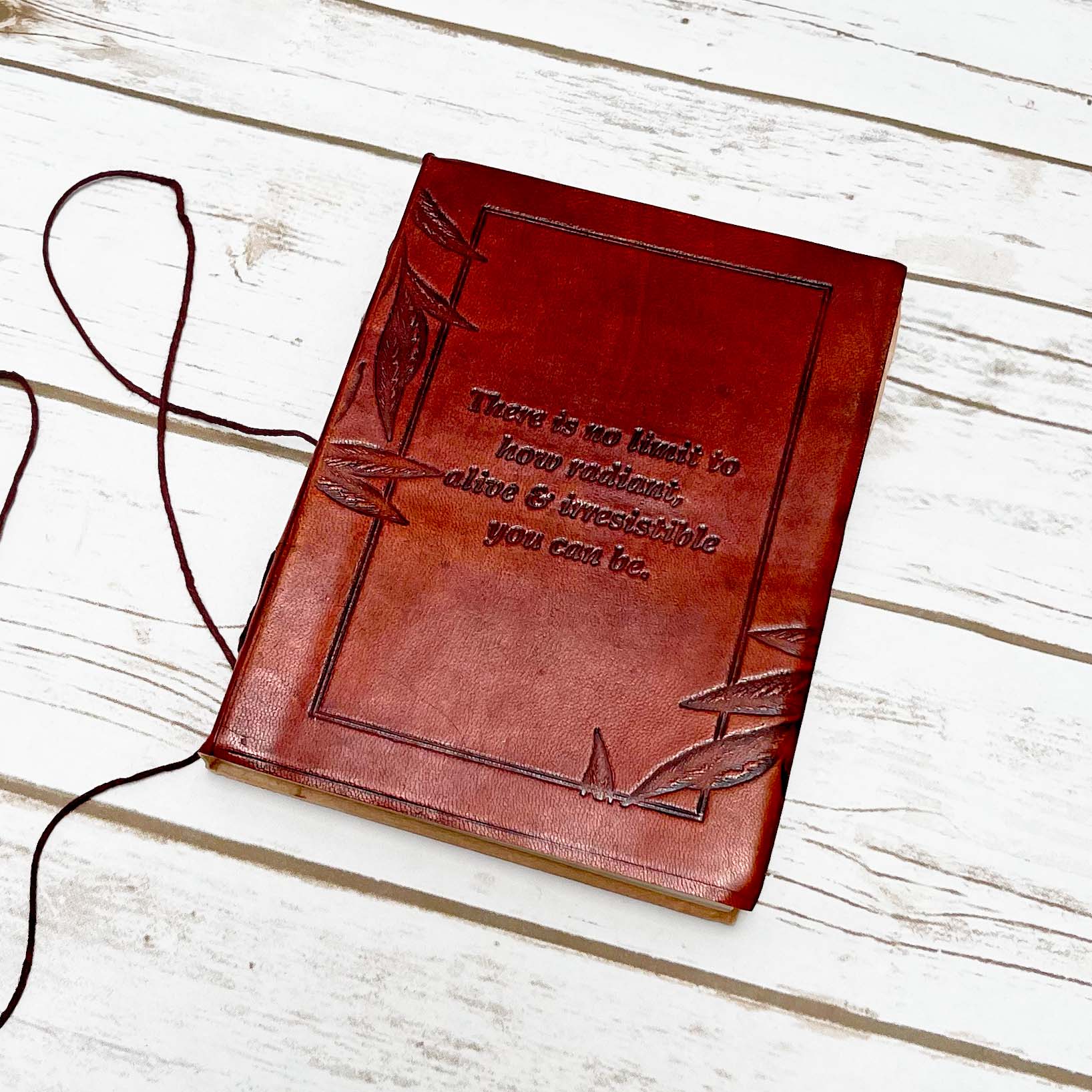 This quote journal embossed with the quote, “There is no limit to how radiant, alive, and irresistible you can be,” will be your confidant that will remind you to believe in yourself and your power.