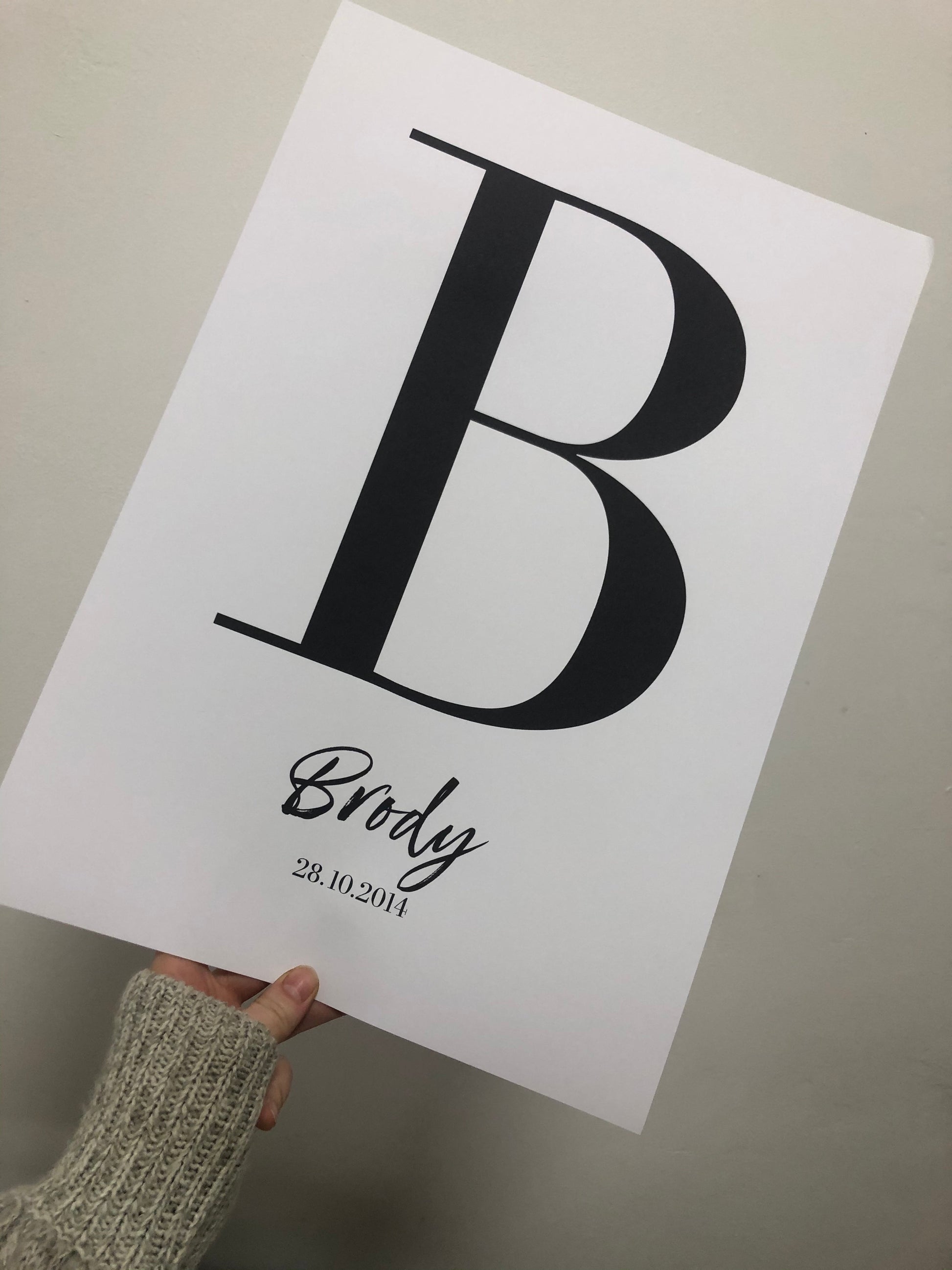 Personalised Black Name Initial DOB Children's Teenagers Room Wall Decor Print by WinsterCreations™ Official Store