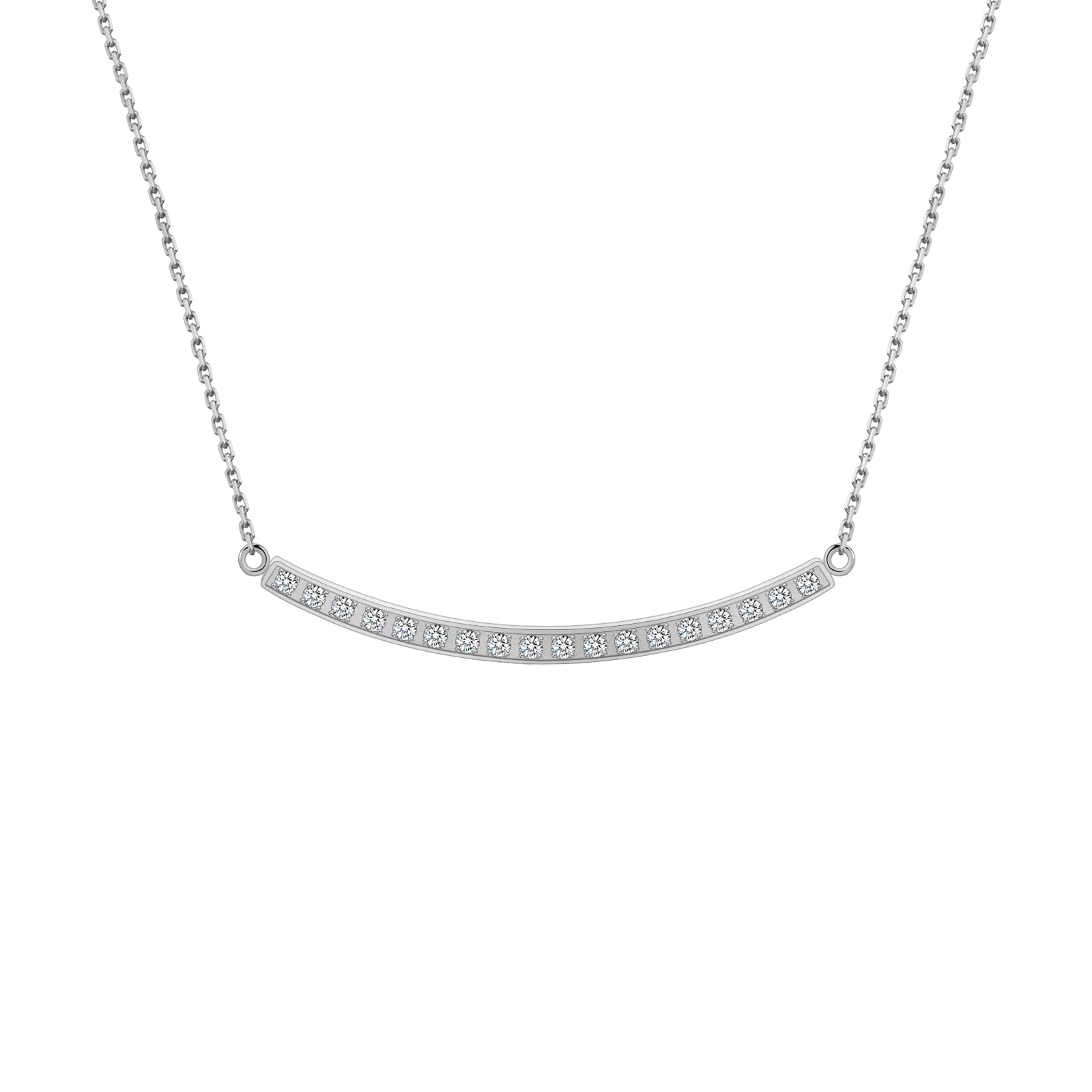 Simplicity can be the strongest design. The soft elegant curve set with a row of B.Tiff Diamond Alternative stones. Featuring a surgical stainless steel adjustable chain that makes this necklace the perfect layering piece. It is available in silver, gold and rose gold color.
