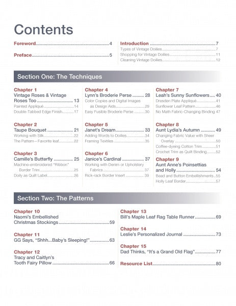 Beautiful vintage doilies are given new life in contemporary quilts and sewing projects. Beginning with an explanation of the various types of doilies readily available, 15 quilting projects creatively incorporate them into their design. With 10 patterns and 137 color images, the techniques are clearly demonstrated and explained. They include painted appliqué, machine-embroidered ribbon border trim, no math fabric-changing binding, adding embellishments and words, and tips for working with silk, denim, or upholstery fabric. So get your doilies out of storage and follow along to make a variety of quilts, pillows, holiday stockings, journal covers, and table runners, or be inspired to make your own creative item. This book is perfect for quilters, crafters, and sewers of all skill level.[AuthorName]Barbara Polston[/AuthorName][AuthorBio]Barbara Polston has been quilting for 20 years. She enjoys showing her quilts and has won numerous awards. She writes prolifically about quilting from her Phoenix, Arizona home.[/AuthorBio][NumIllustration]137 color images, 10 patterns[/NumIllustration][CoAuthor][/CoAuthor][SubTitle]Inspiration, Techniques, & Projects[/SubTitle][ColorPattern]137 color images, 10 patterns[/ColorPattern]Share