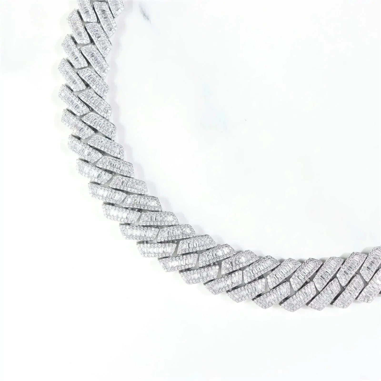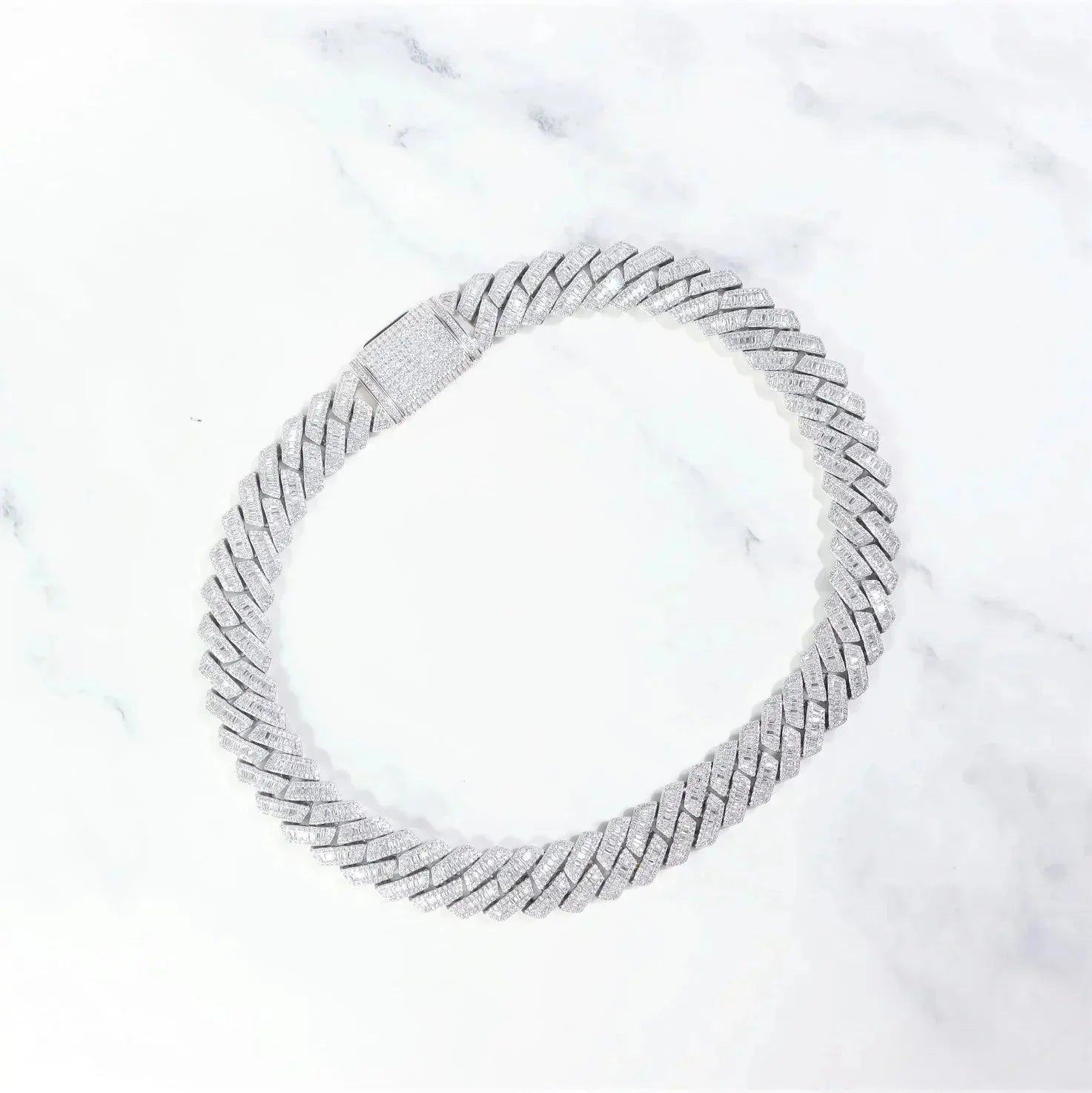 S925 Baguette Moissanite Diamond Cuban Link Chain in White Gold - 16mm by Bling Proud | Urban Jewelry Online Store