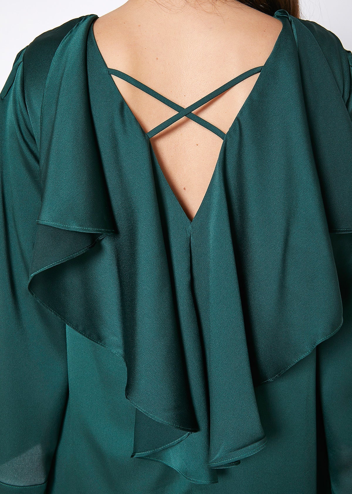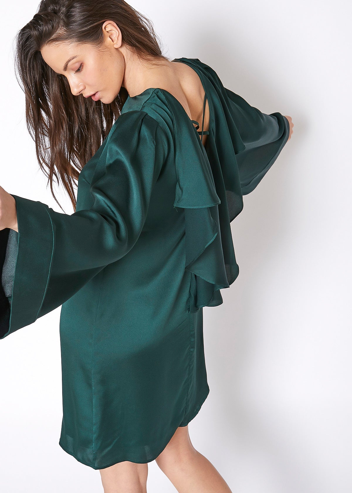 Women's batwing sleeve satin shine tunic dress with a cross back accent.