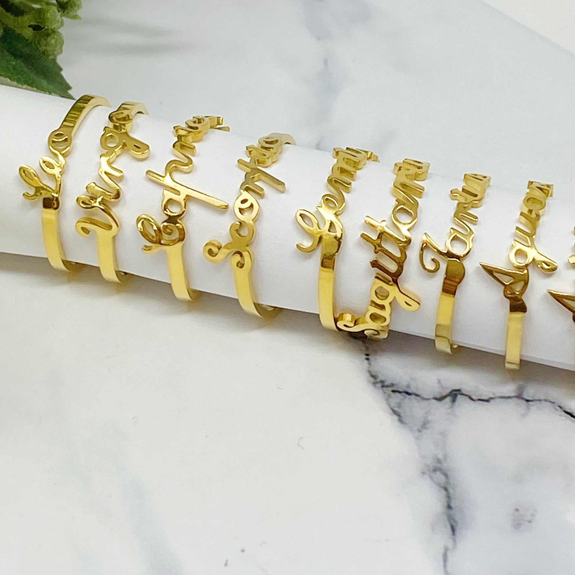 Delicately scripted each zodiac in this ring. Adjustable ring for easy fit on any fingers you want to wear!