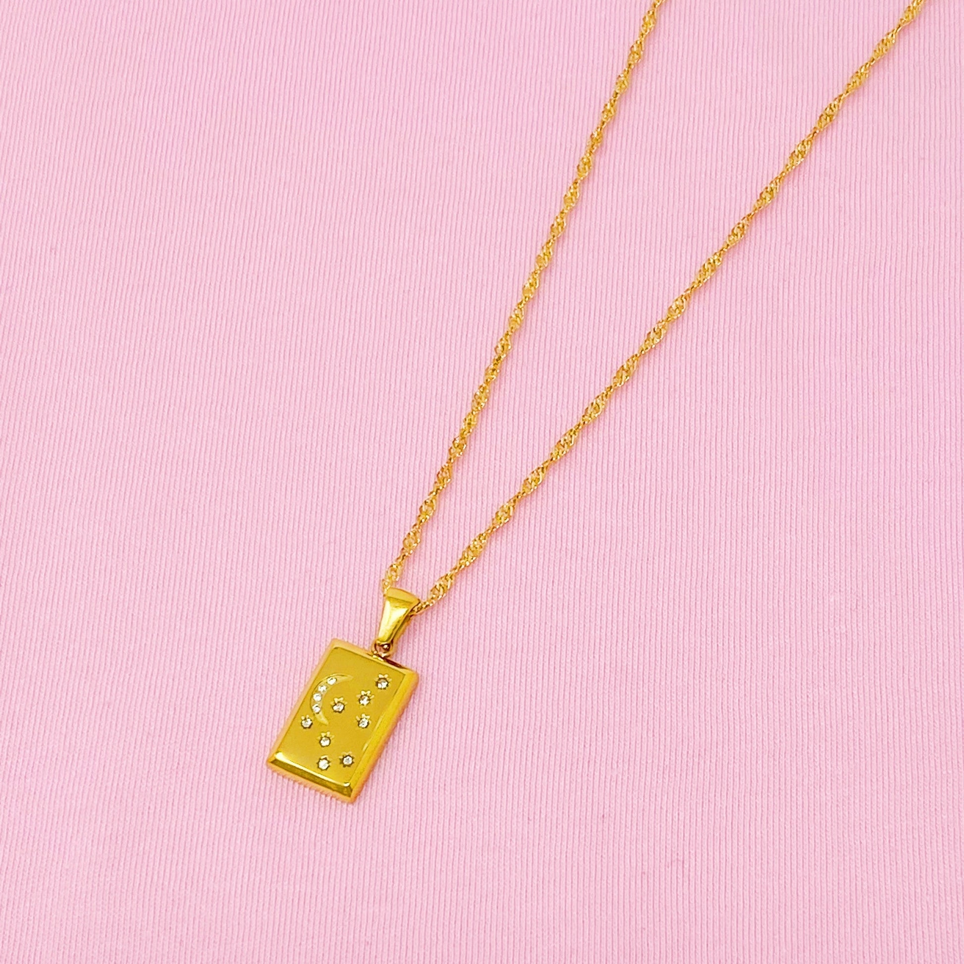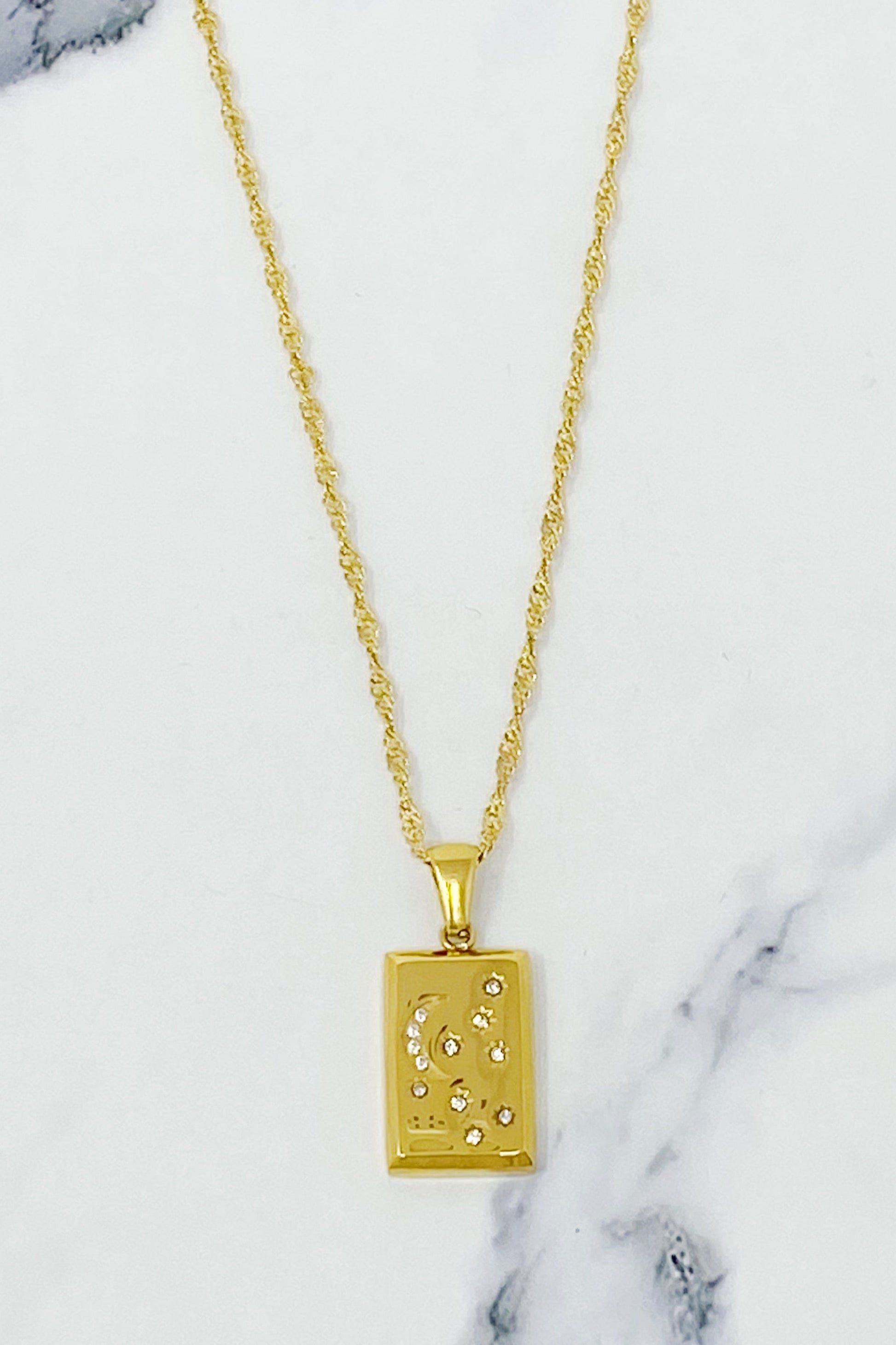 Beautiful pendent detailed with a sun and stars with a cubic zirconia in each. On the back, is a smooth polished finish giving it a exclusive look! The necklace is a beautiful classy twist chain. Such a versatile necklace!