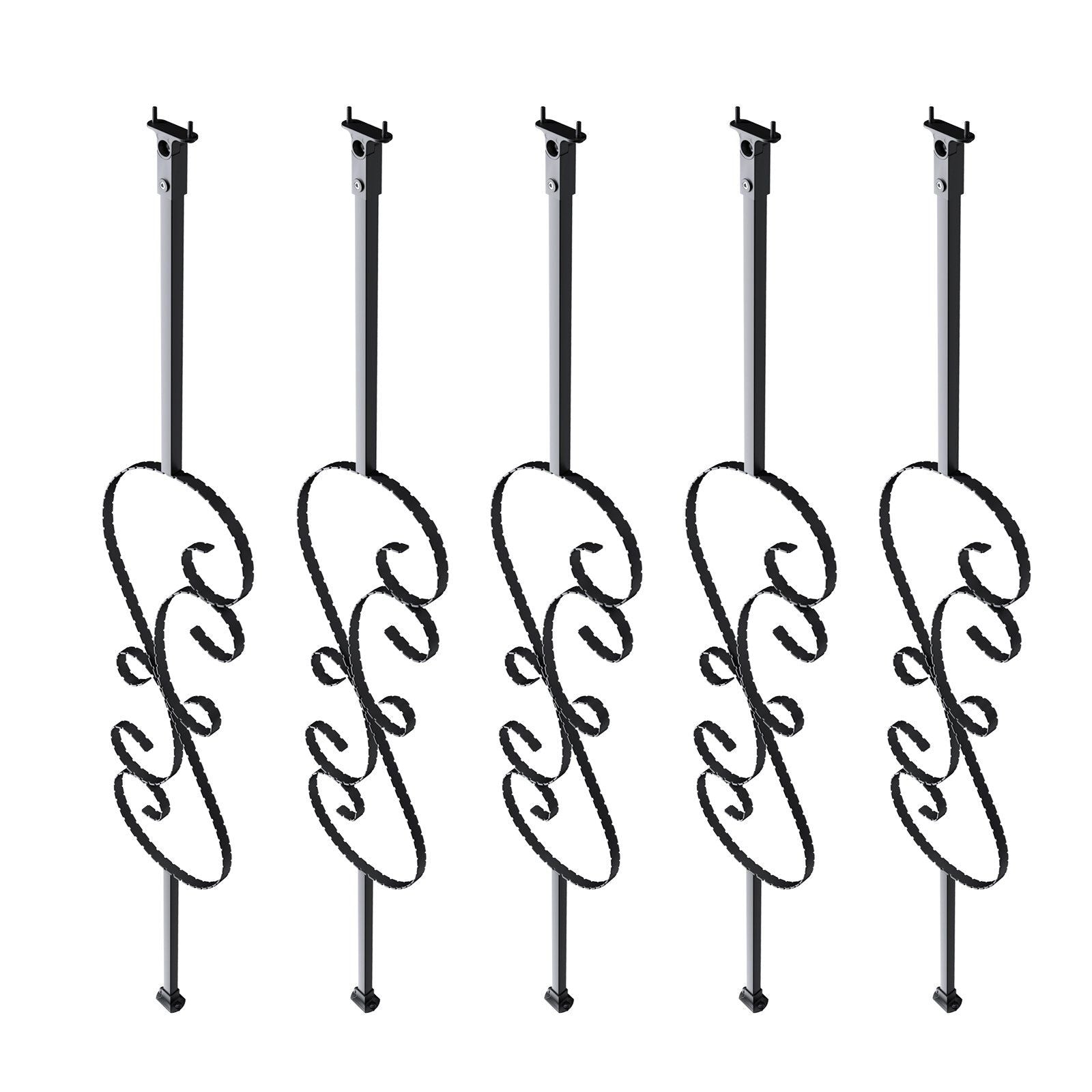 Staircase Metal Balusters, 44'' x 1/2" Galvanized Steel Decorative Banister Spindles, 5 Pack S Shape Deck Baluster, Hollow Satin Black Spiral Stair Railing with Shoes & Screws