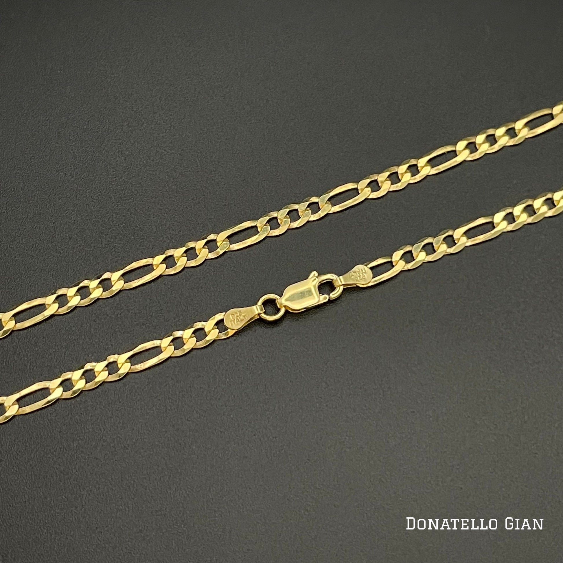 Sterling Silver 925 Figaro Link Chain 3.5MM, 16"-24", Figaro Chain Necklace, 14K Yellow Gold Plated Italian Made Sterling Silver 925 Unisex Chain by Donatello Gian