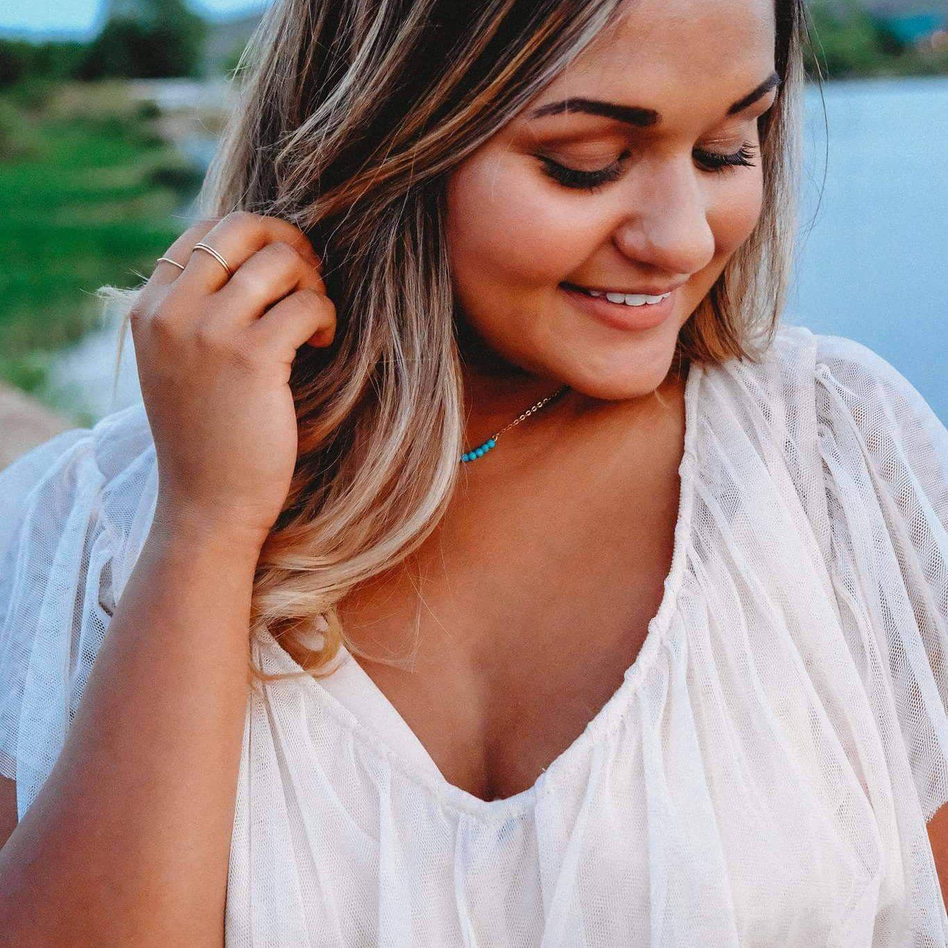 This is a stunning handcrafted bar necklace that is also a perfect way to accessorize and say thank you to your bridesmaids!! This is a classic dainty bar necklace with turquoise howlite beads. It's a must-have necklace for the boho or classic woman in your life.