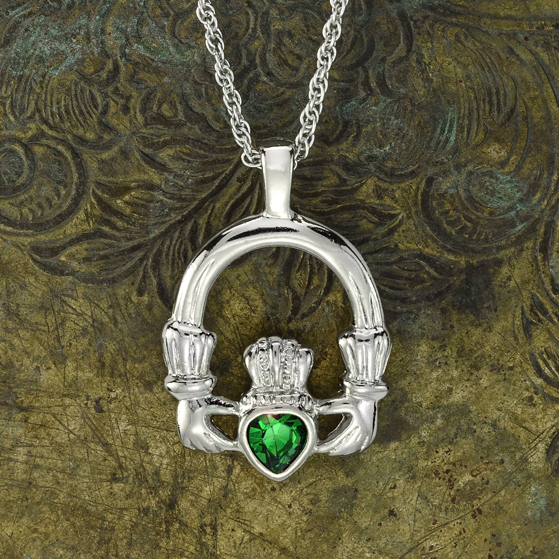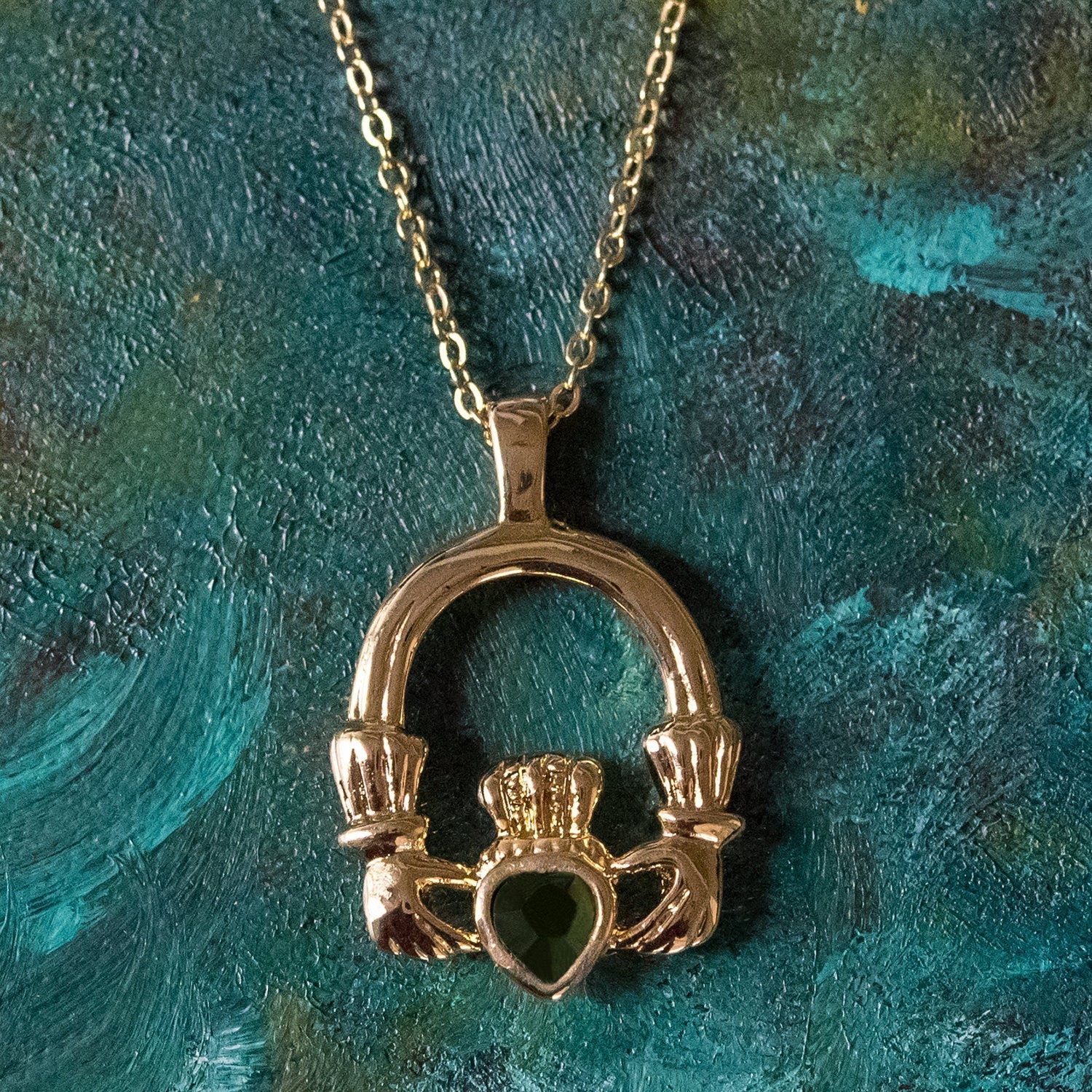 Vintage Claddagh Necklace Austrian Heart Crystal 18k Yellow Gold Electroplated Made in the USA by PVD Vintage Jewelry