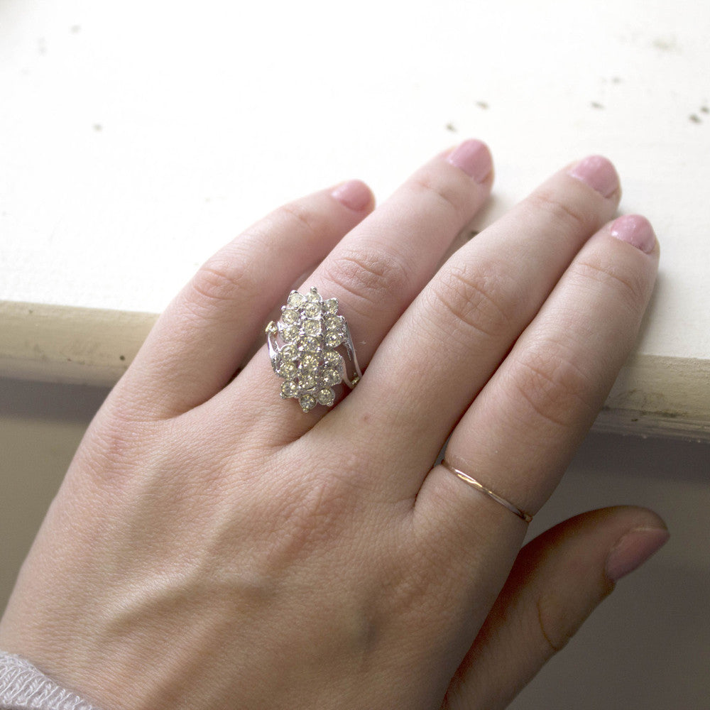 Vintage Jewelry Clear Crystal Cocktail Ring Electroplated with 18kt Yellow Gold Made in the USA by PVD Vintage Jewelry