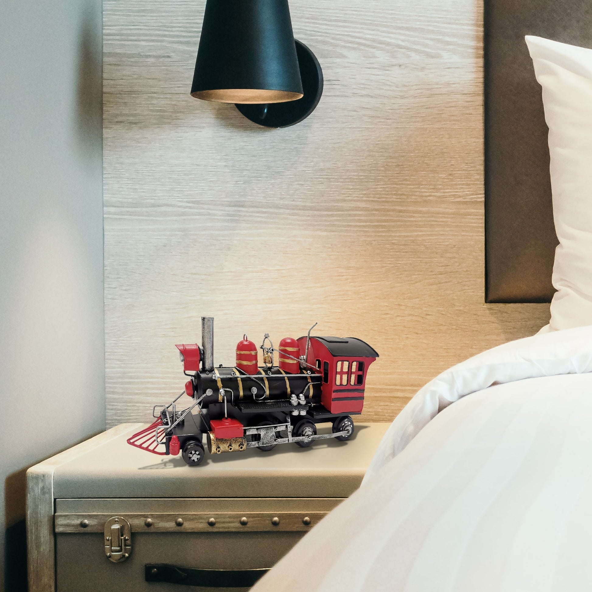 This handmade Vintage Train Metal Model is a great way to add a rustic touch to your home décor. Perfect for displaying on a shelf, mantel, or table.