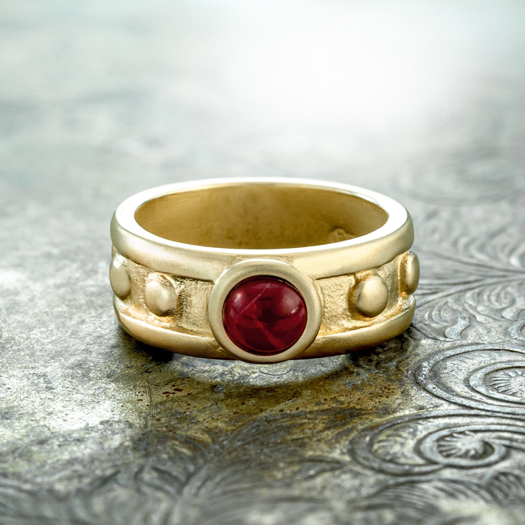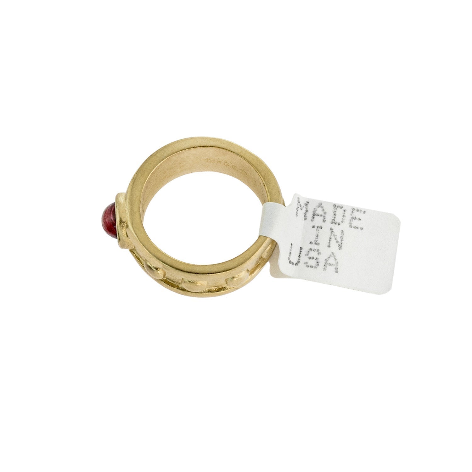 Vintage Ring 1970s Sapphire Cabocon Glass Ring 18k Brushed Gold September Birthstone #R3095 by PVD Vintage Jewelry