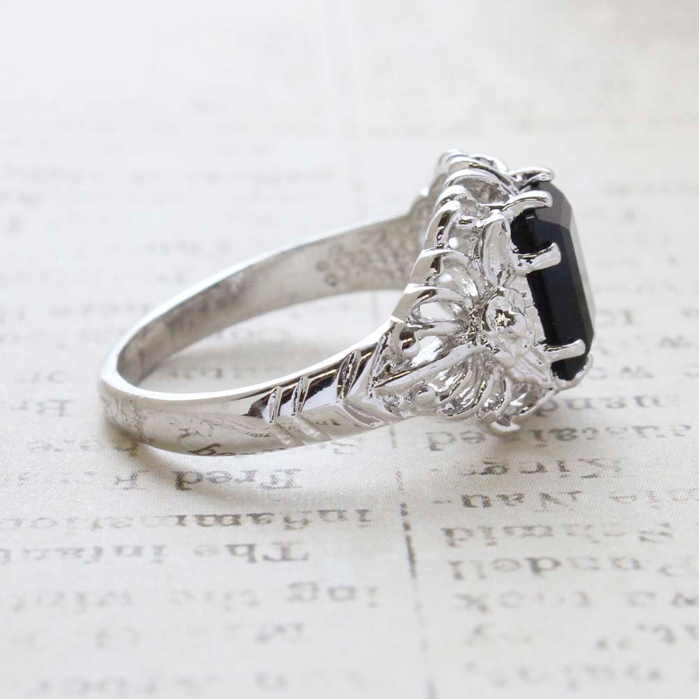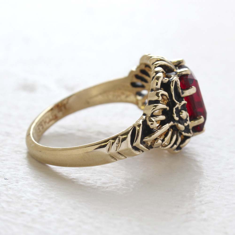 Vintage Ring Emerald Cut Emerald Austrian Crystal 18kt Antiqued Yellow Gold Plated Filligree Ring by PVD Vintage Jewelry