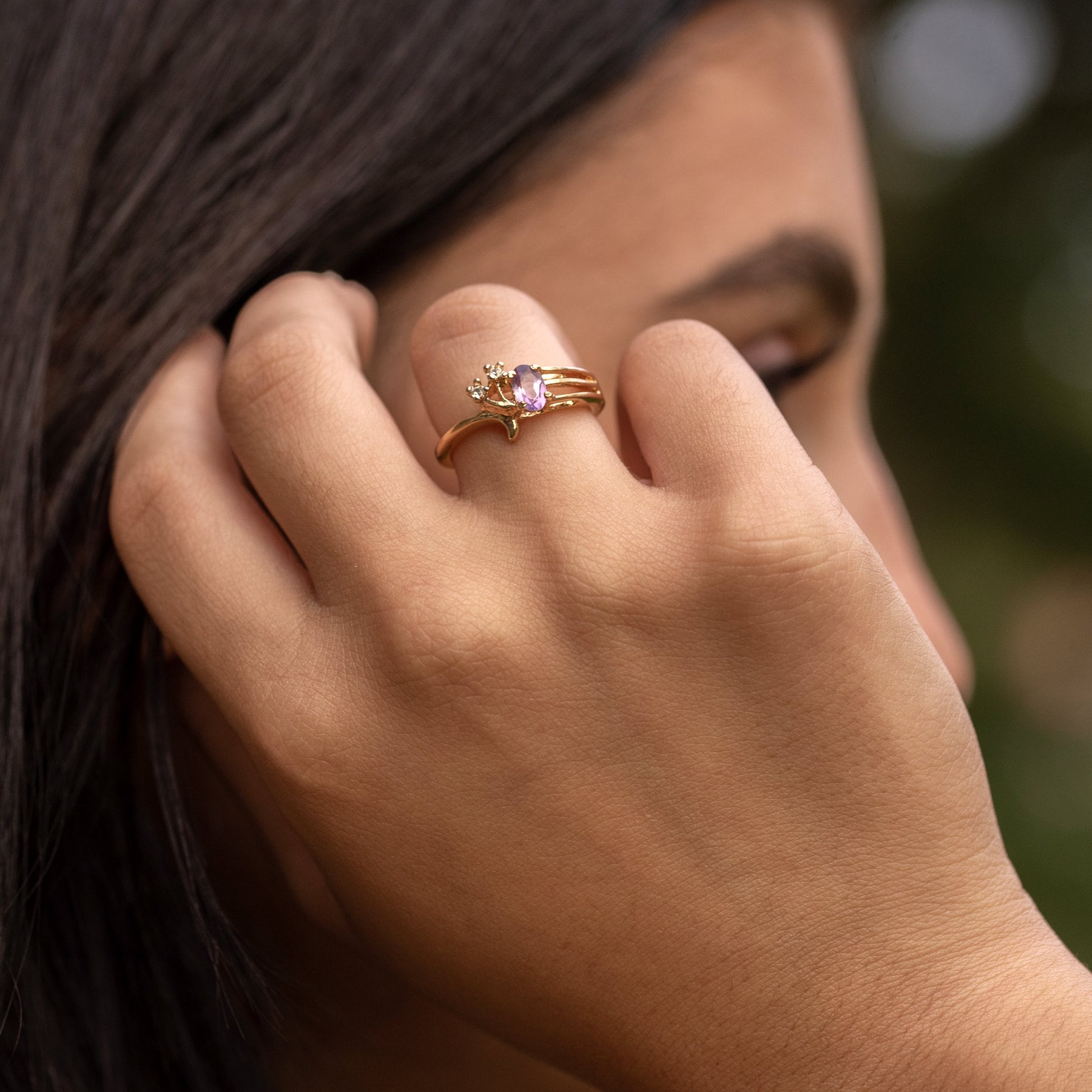 Vintage Ring Genuine Amethyst and Clear Swarovski Crystals 18kt Gold Plated R690 by PVD Vintage Jewelry