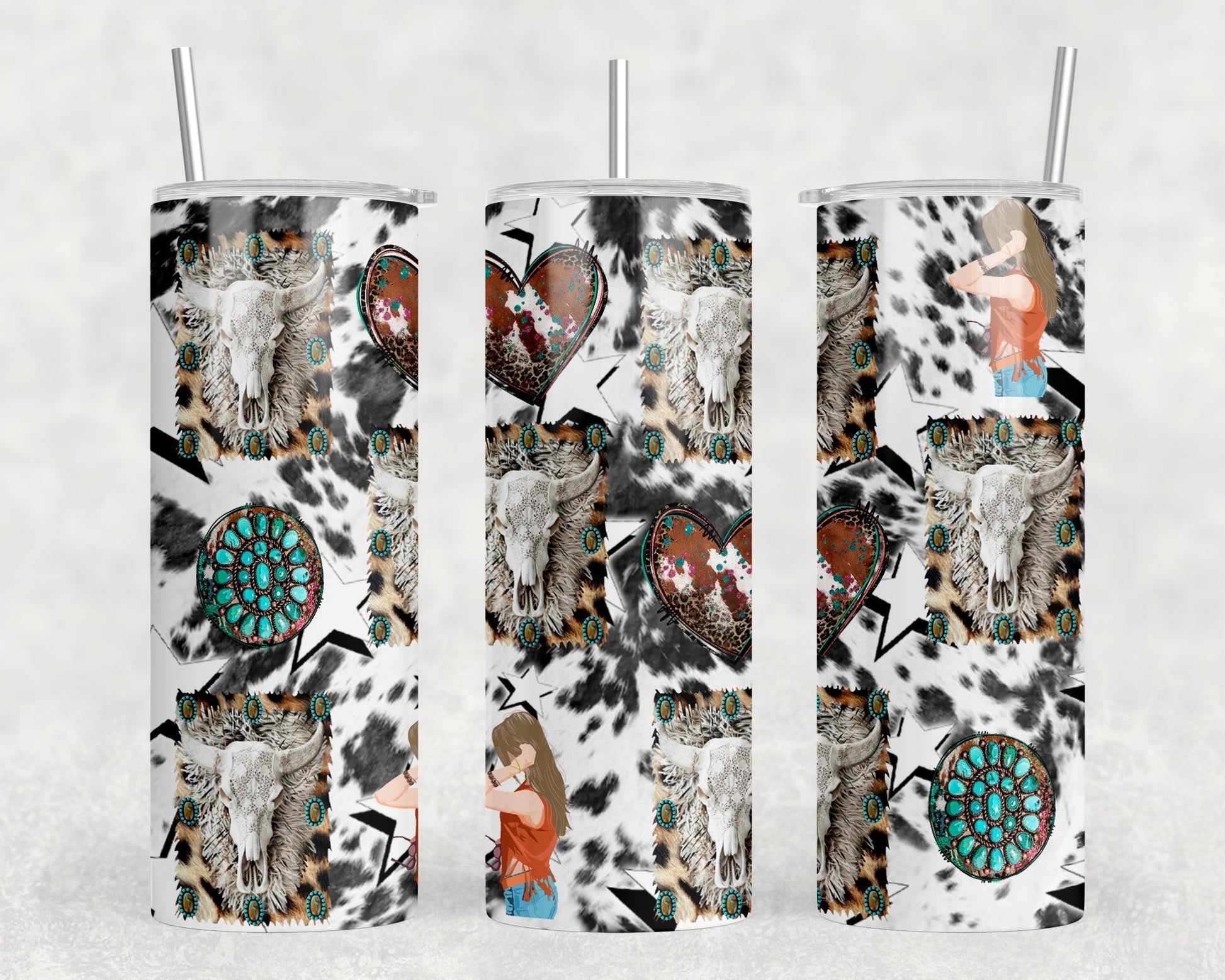 Western Collage - 20 oz Steel Skinny Tumbler - Optional Blue Tooth Speaker - Speaker Color will Vary by Rowdy Ridge Co