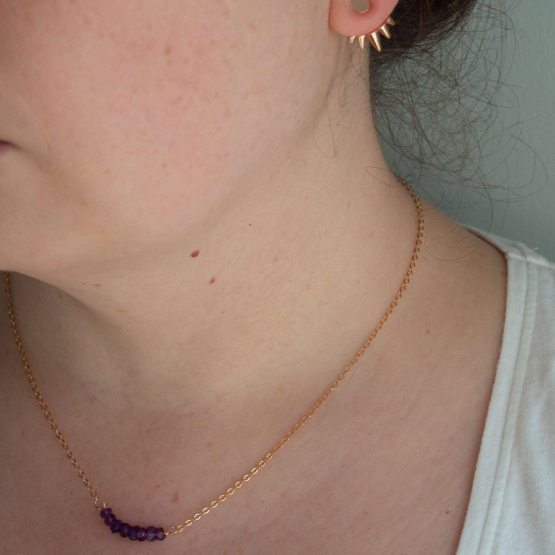 This is a stunning handcrafted yellow citrine beaded bar necklace perfect for bridal parties, birthdays and holidays. Its cheerful yellow hue will bring a little sunshine to any day. It's a gorgeous accessory for the minimalist woman in your life!