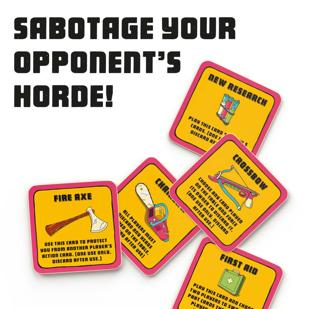 In this simple-to-learn and easy-to-play card game, you will collect body parts and build zombies! But watch out! Every zombie played is susceptible to sabotage cards - so be strategic about which zombies you play!